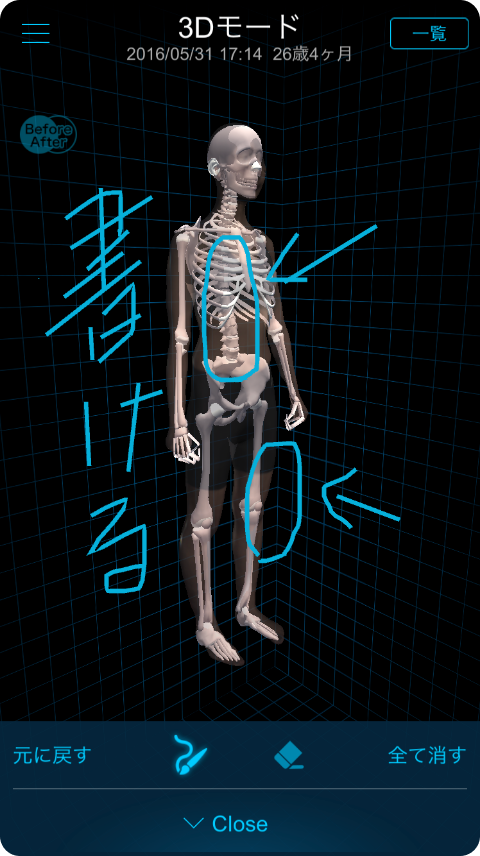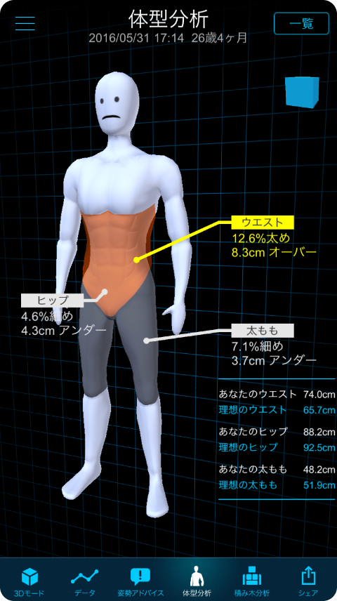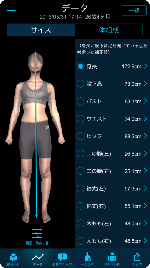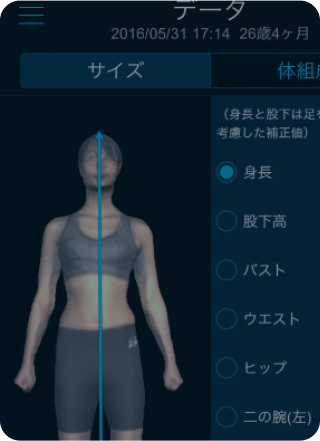 3Dスキャンのスキャンデータ及び体組成計の測定結果をセットにして保存