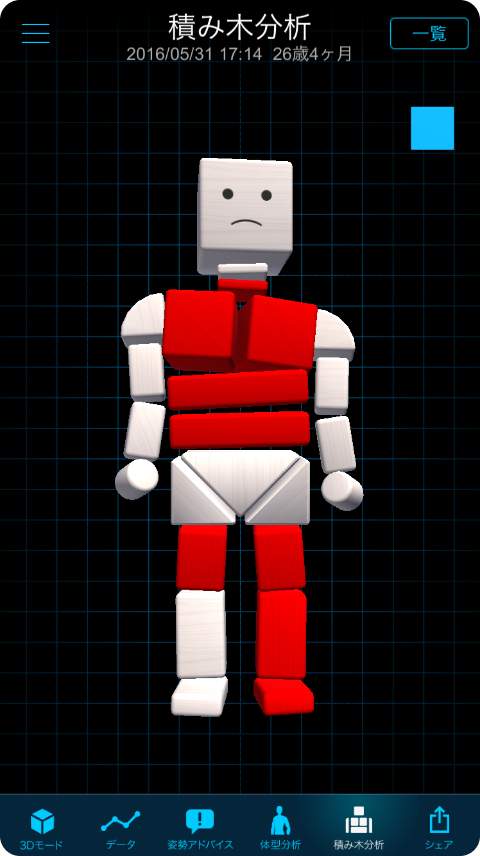 複数のブロックで人体ブロックモデルを示し、異常アリの部位に応じたブロックを他と相違する形態にする。